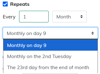 | 1. Recurring Delivery Settings | ・Select Day, Week, or Month from the dropdown menu. Select "Week" and choose the day of the week for the message to be sent. ▼To send monthly: Select "Month" and choose the delivery frequency. |