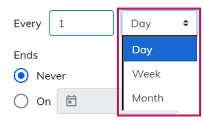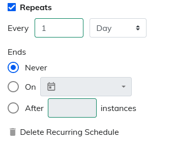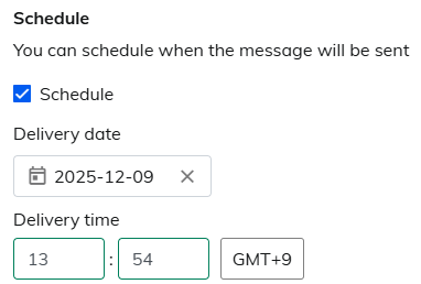 | 2. Ends | ・Never: Messages continue to be sent without an end date. ・On [Date]: Set a specific date to end the delivery on that date. ・After [times] instances: Set the number of deliveries, for example, end the delivery after 10 messages. |