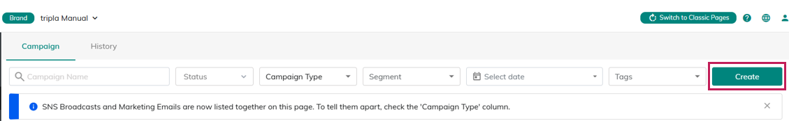 The SNS broadcast feature is not available without a tripla Bot subscription.