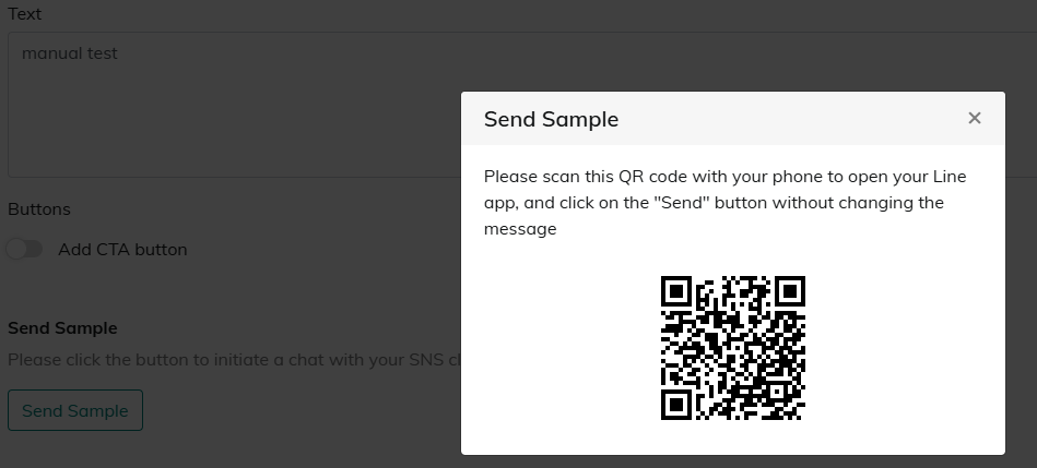1. Title This is an internal management title and is not displayed to customers.2. Channel ・Select either [LINE] or [Messenger].・Only SNS services that are integrated under "Property Management Screen > Admin Settings > Features and Integrations" in the Bot property admin screen are displayed here.*WhatsApp is not supported by the Connect SNS broadcast feature.3. Images Input image for the campaign.4. Text Enter the free text.5. Add CTA button ・When configuring a link, set the button title and the destination URL.*If a link is configured and [Save] is clicked, the following UTM parameters are automatically added, enabling conversion tracking:utm_source=cdp&utm_medium=line&sns_id={{sns_id}}6. Send Sample The created message can be sent as a test.