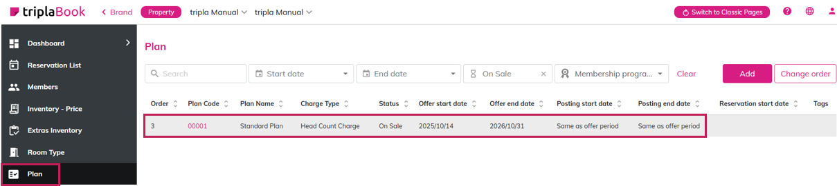 Purpose This section explains how to create / add new accommodation plan. ⏱ Estimated time: ~10mins Required Setting: 2.2. Plan Name and Description (Required) 3.4.1. Offer Period (Required) 3.4.4 Reservation period (Required) 3.5. Pricing structure ...