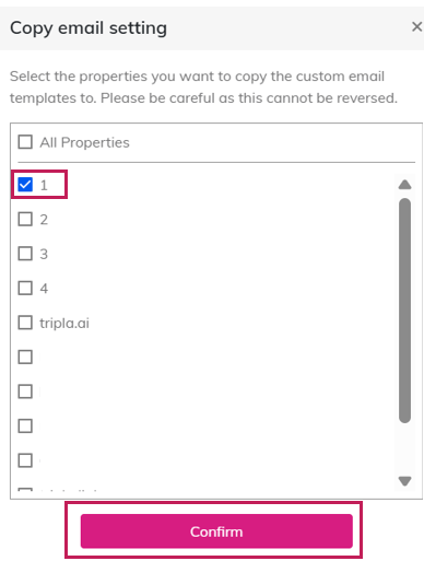| Step 1 | After click [Custom Email template] , brand administrator will see [Copy to other properties] button on the bottom. |