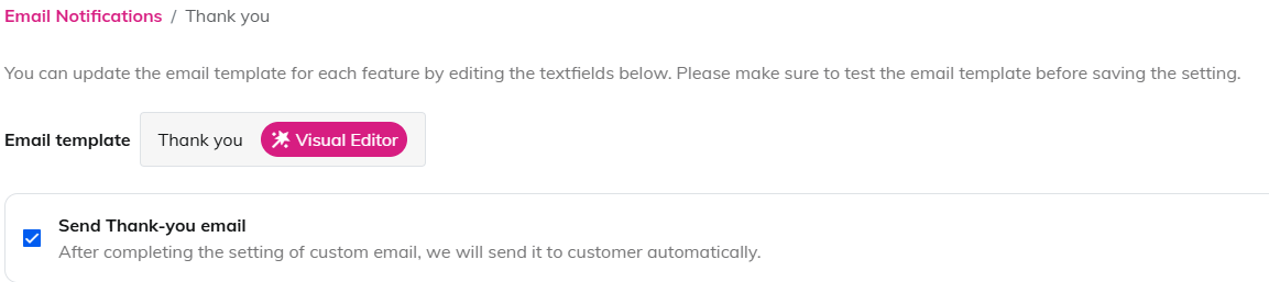 Step 1 Enable the [Send Thank-you email] status.