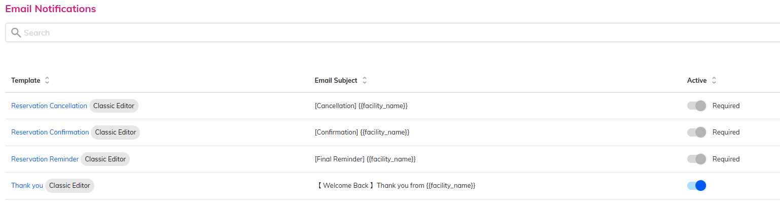 | Subject | [Confirmation] {{facility_name}} |