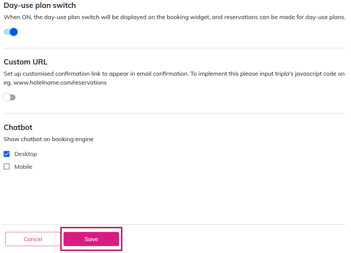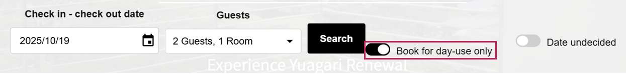 Once Day-use plan switch is enabled in Tripla book, "Book for day-use only" switch will appear on Booking Widget | ||