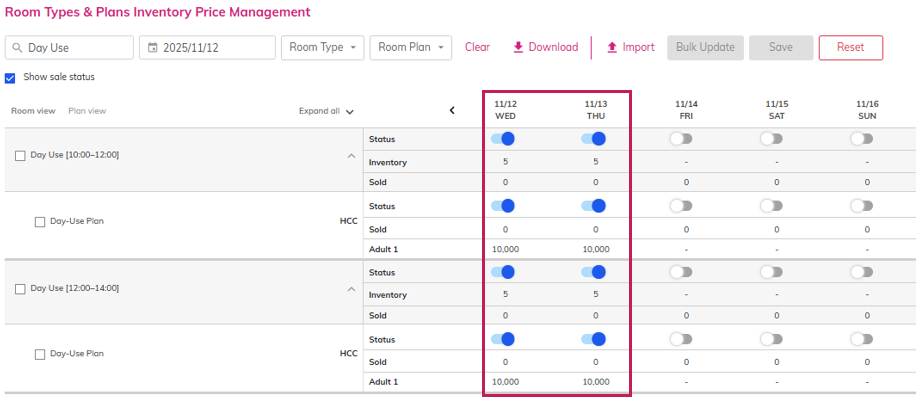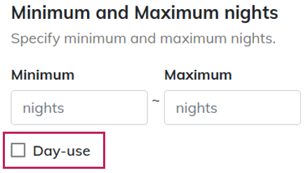 Step 2 | To active the Day-use plan, enable [Day-use] box on "Minimum and Maximum nights" |