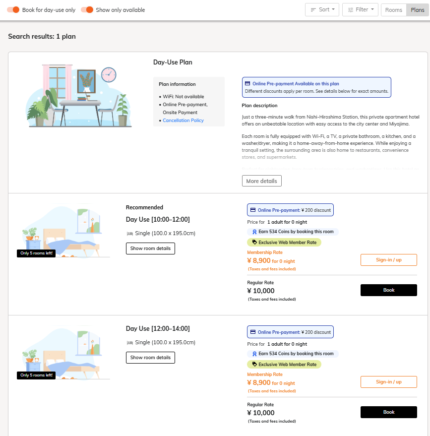 Step 3 | ・The hourly day-use plan is now ready for sale. |