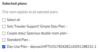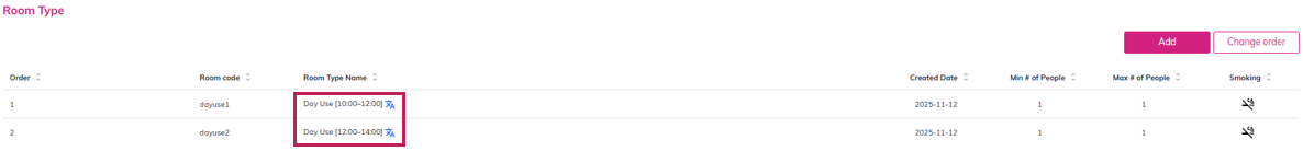 Step 1 | ・ Create each time slot as a separate room type and link it with the pre-created Day-Use Plan. ■Related Manual Room Type Settings – How to create and manage different room types. Plan Creation – How to create plans. |