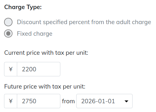 - [Current price with tax per unit]: used when the charge is set as a fixed amount.