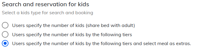 - This can be used when [Users specify the number of kids by the following tiers and select meal as extras] is selected in the "Kids settings", and meal or bedding settings for infants are configured under the “Extra type”.