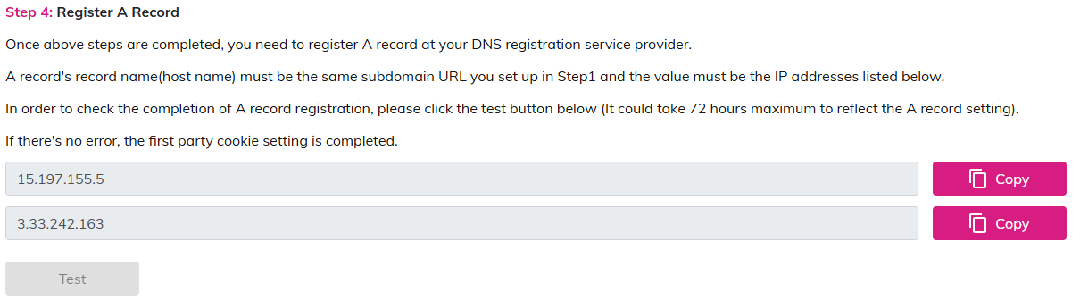 2. Register First Party Cookie Subdomain URL