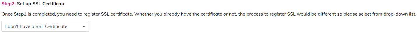 | Step 1 | Select [I don't have a SSL Certificate]. |