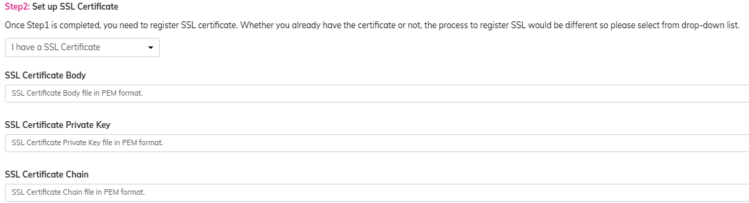 ・ SSL Certificate Body ・ SSL Certificate Private Key ・ SSL Certificate Chain