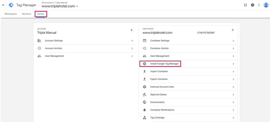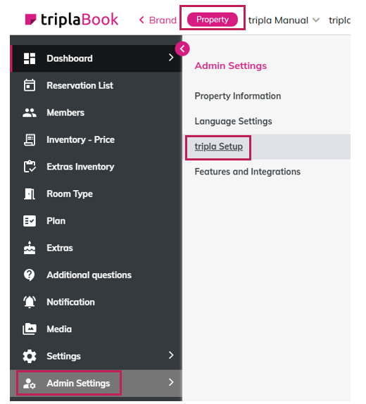 Setting page: Property Management Screen. Action: 'Admin Setting' → 'tripla Setup'To use the Data Layer feature, a tag such as GTM must be placed within the <head> tag and the <body> tag.Once these tags are implemented, the button will be displayed. By default, the button is hidden.