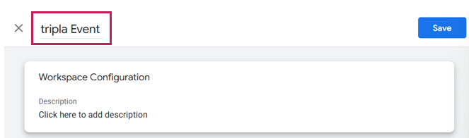 | Step 3 | ・Click [Default Workspace]. ・Click [+] icon to add new Workspace. ・To make it easier to recognize, enter "tripla Event" as the workspace name and click [Save]. |