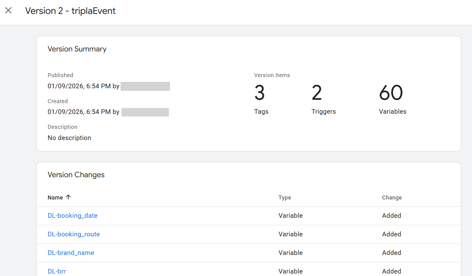 | Step 8 | ・Click [triplaEvent]. ・On the search results page, a list of parameters obtained for triplaEvent is displayed. ![]() ・Various parameters can be confirmed, and by scrolling down, the parameter required for funnel analysis in the booking flow, page_category, can be found. ・This completes the GTM setup. |