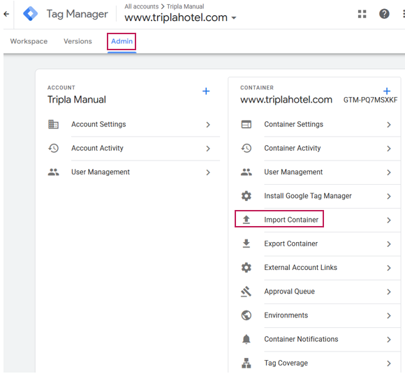 | Step 1 | From the GTM Screen, click [Import Container]. |