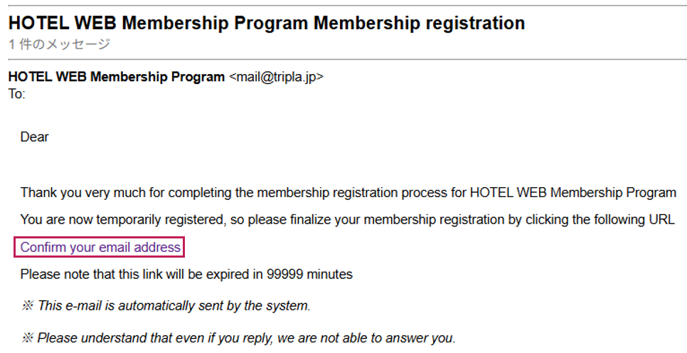 | Step 3 | ・A membership verification email will be sent to the registered email address. ・Complete the final step of membership registration by clicking the link in the membership verification email. |