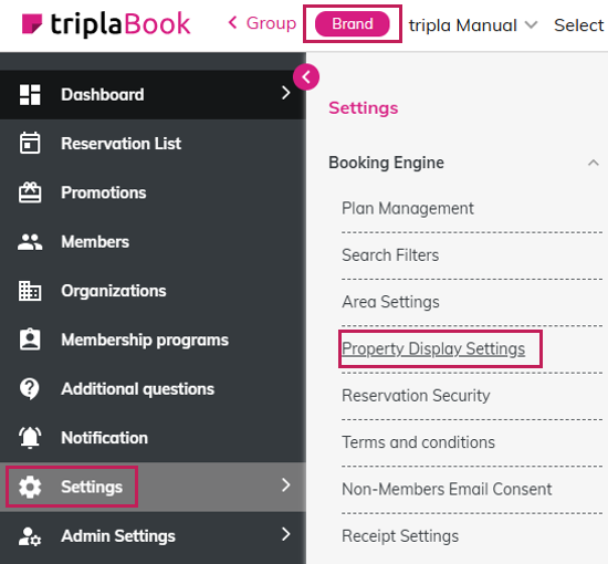 - Action: 'Setting' → 'Booking Engine' → [Property Display Settings]