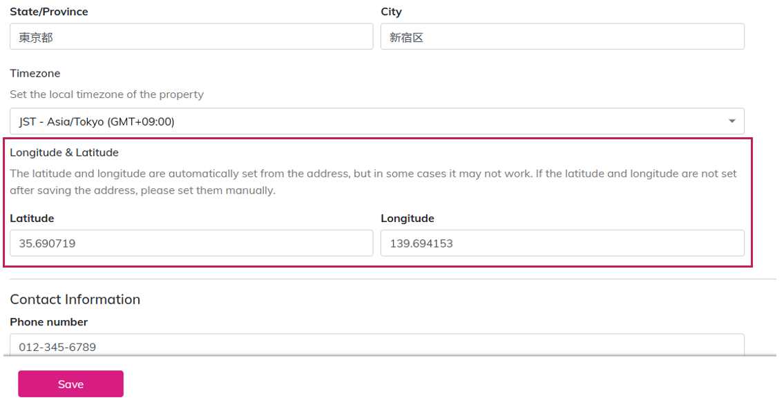 | 1 | Check whether the property has correct longitude and latitude entered. *If the property has no longitude or latitude set, the property will appear at the bottom of the suggested properties list.