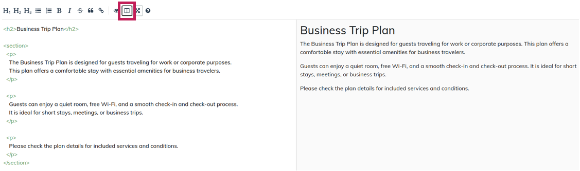 Edit in dual-screen mode while checking the display as it appears on the website. | |