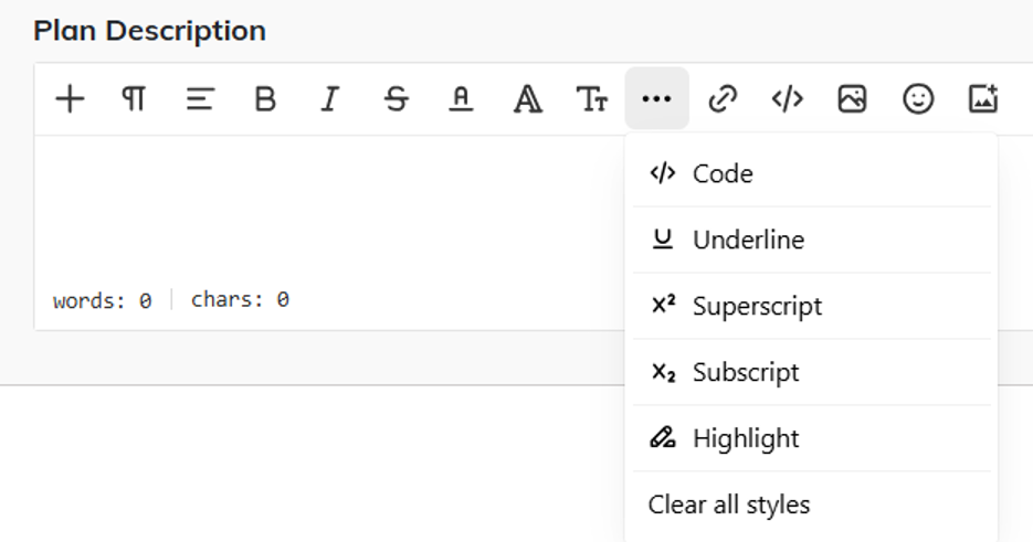 Other formatting options (code, underline, superscript, subscript, highlight). | |
