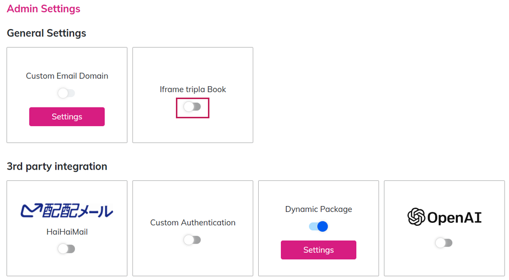 | Step 1 | Turn on the toggle switch for "Iframe tripla Book". |