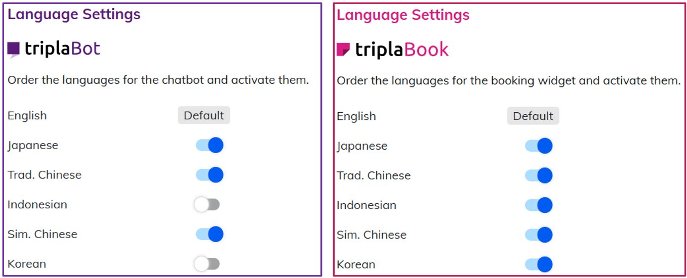 This section explains how to configure the language settings used across all Tripla services.