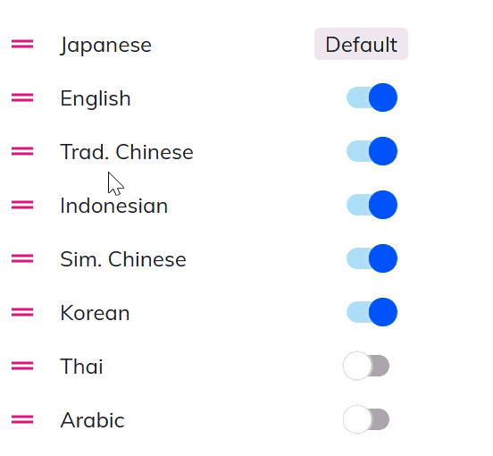 *The top language is automatically set as the default.