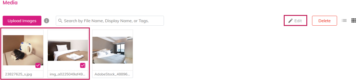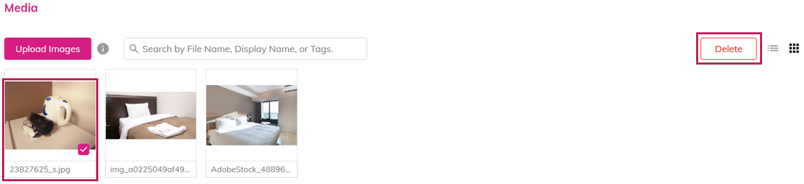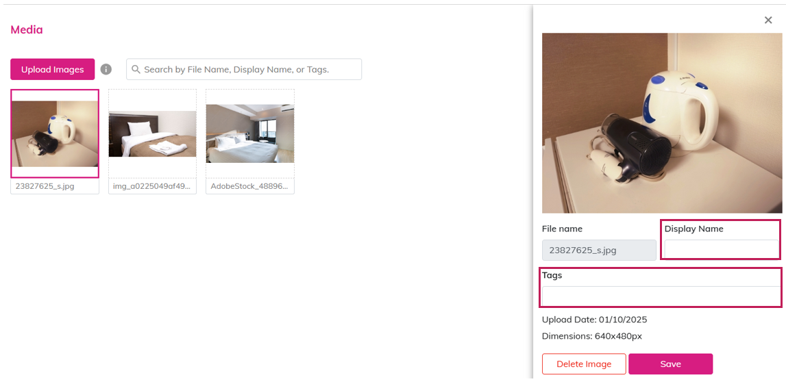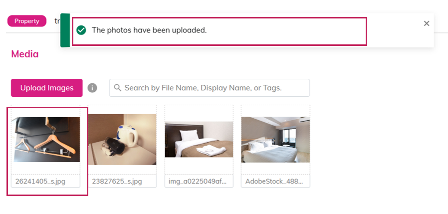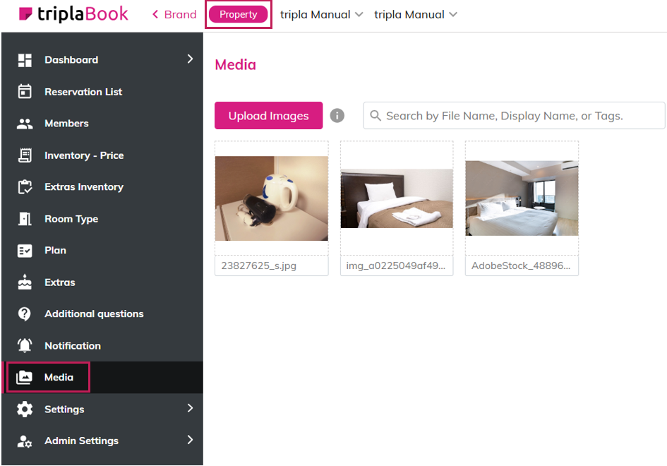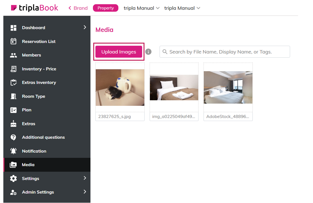 By uploading images to the Media screen in bulk first, images can be efficiently selected and applied when creating room types or plans.