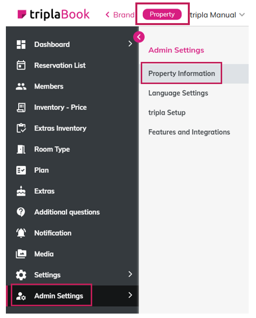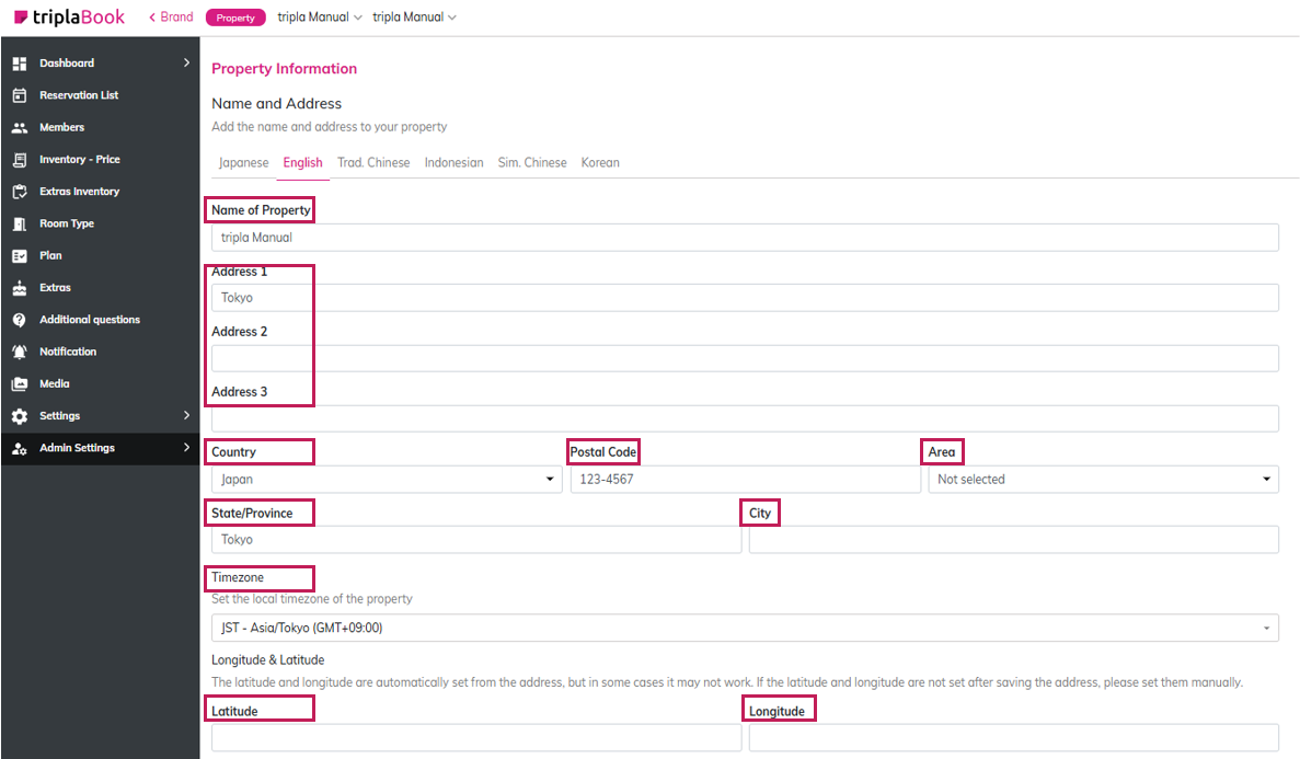 | 1. Name of Property | Enter the property name.(This is usually registered by tripla) |