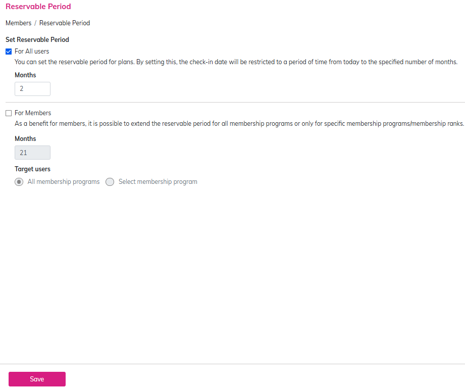Purpose This section explains how to create / add new accommodation plan. ⏱ Estimated time: ~10mins Required Setting: 2.2. Plan Name and Description (Required) 3.4.1. Offer Period (Required) 3.4.4 Reservation period (Required) 3.5. Pricing structure ...