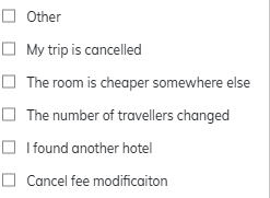 ・Last ○○ days (Specify the days)Specify the date of the first or lastest check-in. 5. First / Lastest Checkout Date ・Equal to・Greater than・Greater than or equal to・Less than・Less than or equal to・Between・Date (Choose specific date from calendar)
