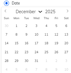 ・Between・Date (Choose specific date from calendar)