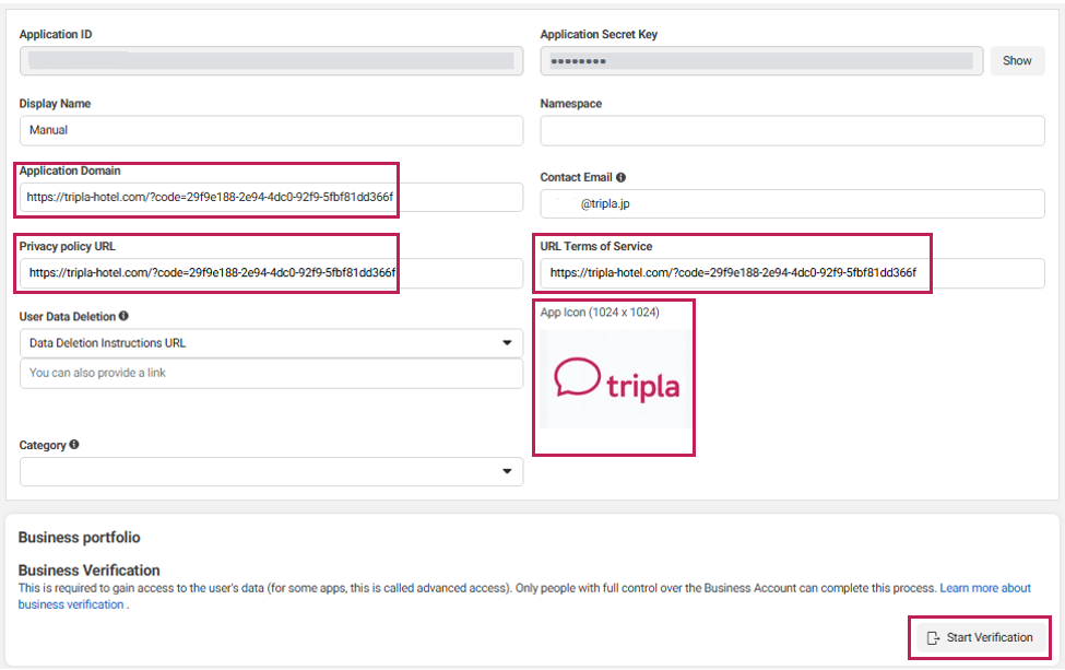 If the property does not have subdomain, use Hotel's official URL instead.(Example: for the subdomain URL is "https://www.tripla-subdomain.jp", add only "tripla-subdomain.jp".)