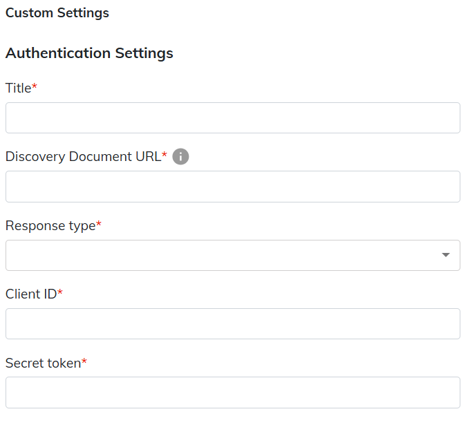 Title This title will be displayed as the login option on the customer-facing screen. Discovery Document URL Enter the IdP URL used by the property. Response Type Choose from code・id_token. Client ID The Client ID created in Google. Secret Token The Client Secret created in Google. Upload Logo Upload the logo to be shown on the left side of the login button on the customer screen.*Even if you set the logo in the OAuth consent screen, it won’t reflect — please upload it here.Button Color (Background) Choose the background color of the login button displayed on the customer screen. Button Color (Text) Choose the text color of the login button displayed on the customer screen.