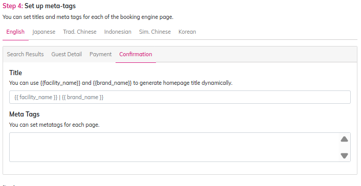 - When converting the booking widget to a subdomain, page title settings are required to maintain the brand concept displayed in the browser.