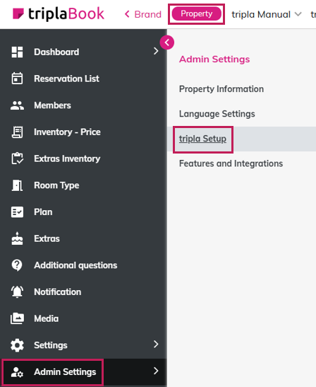 - Action: 'Admin Settings' → [tripla Setup]