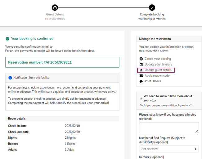 | Step 2 | Select [Update Guest details].