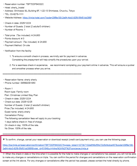 Purpose This section explains the steps for canceling a reservation. ⏱ Estimated time: ~5 mins 1. Cancel from Email Confirmation Step 1 ・Click on the URL provided in the reservation confirmation email. ・After clicking the URL, Reservation ...