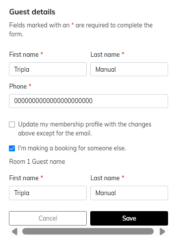 ・The guest details can be updated. ・After entering the changes, select [Save] to register the updated information.