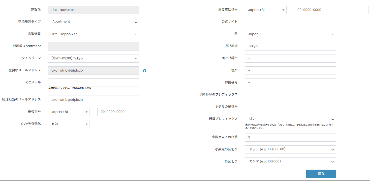 - CVV有効化は、システムがゲストのクレジットカード番号を施設のメールアドレスに送信する際に、CVV番号を表示するか非表示にするかに影響します。
