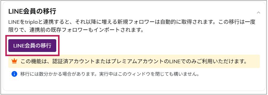 tripla BookとLINE連携をする前のLINE友達を管理するための 一回限りの移行を目的としています。