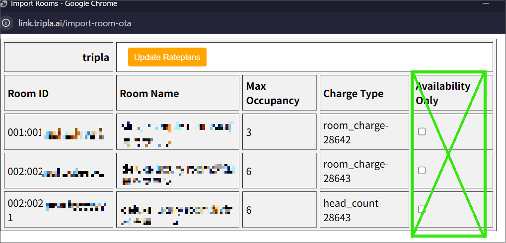 ⑤. 「Update Rateplans (料金プランの更新)」をクリックして、Linkシステムに取り込みます。