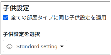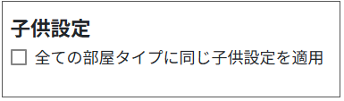 「全ての部屋タイプに同じ子供設定を適用」のチェックが入っている状態だと、すべて同じ子供設定が適用されます。
