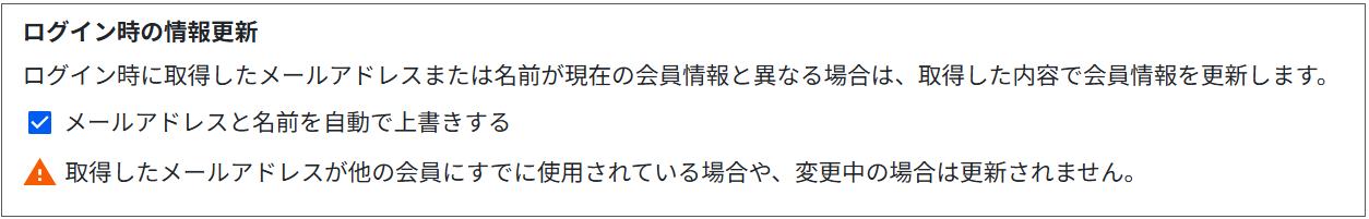 SNSログインをONにすることでユーザーが会員登録する際、ユーザーが保持しているSNSアカウントを使うことで情報登録の手間を省くことが出来ます。