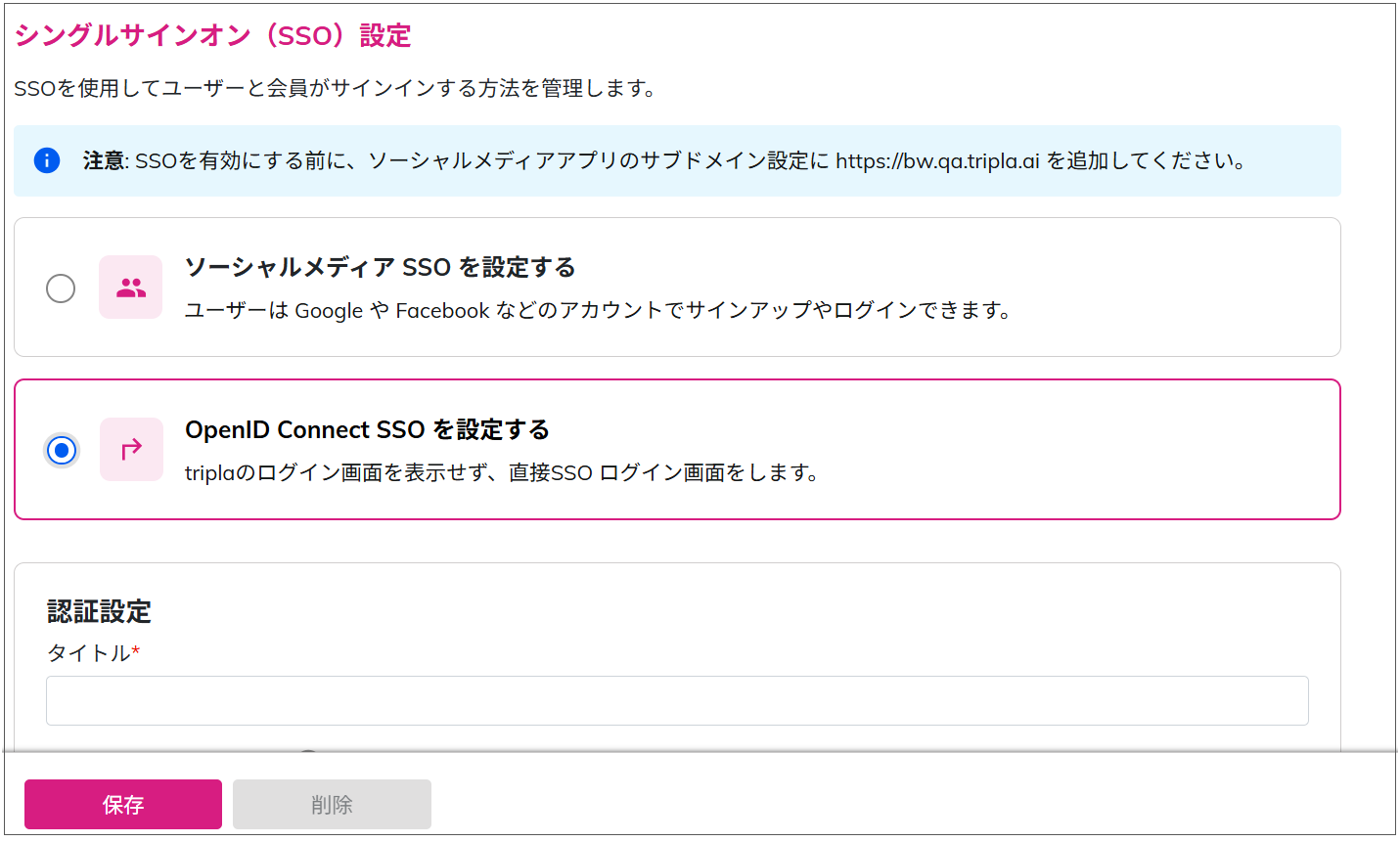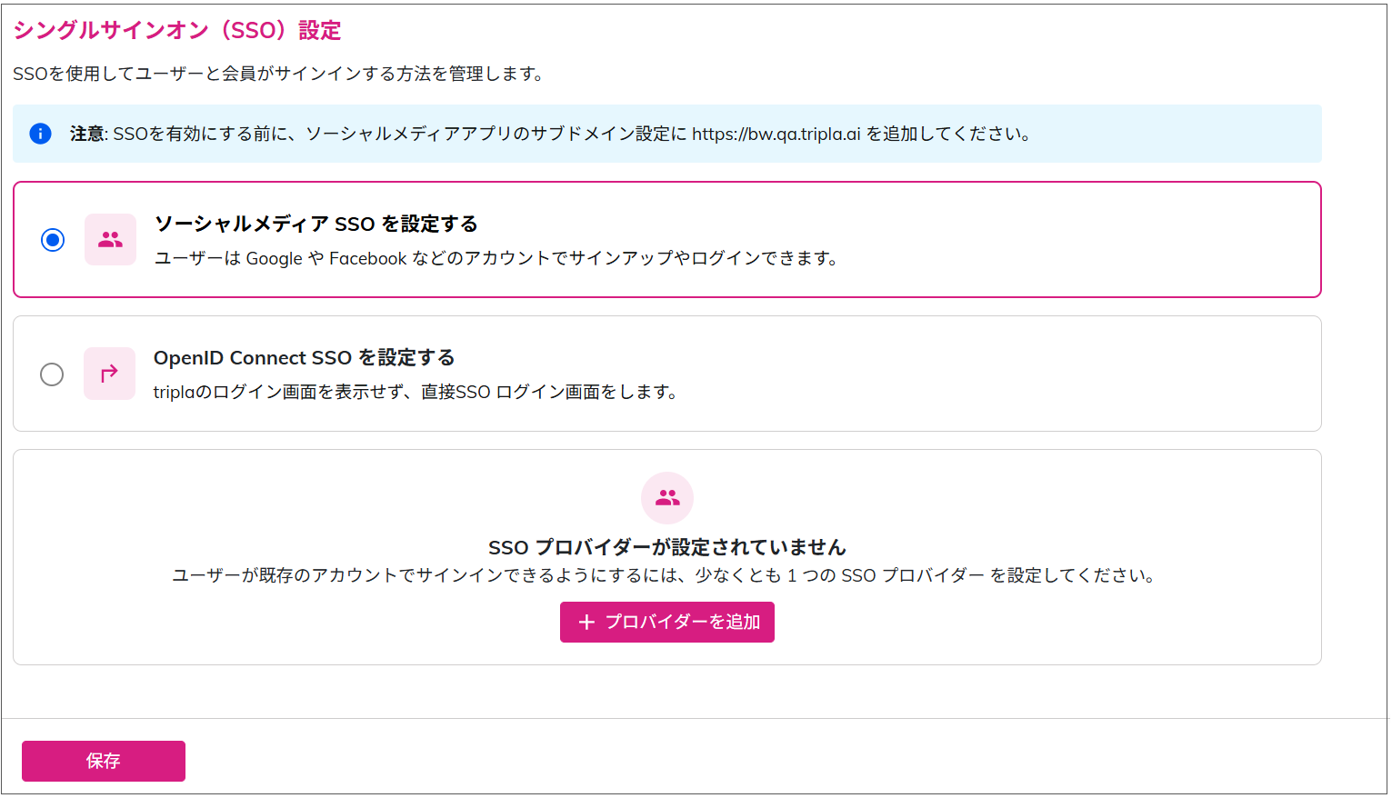 tripla管理画面で行うSSO設定は、ブランド単位での設定です。